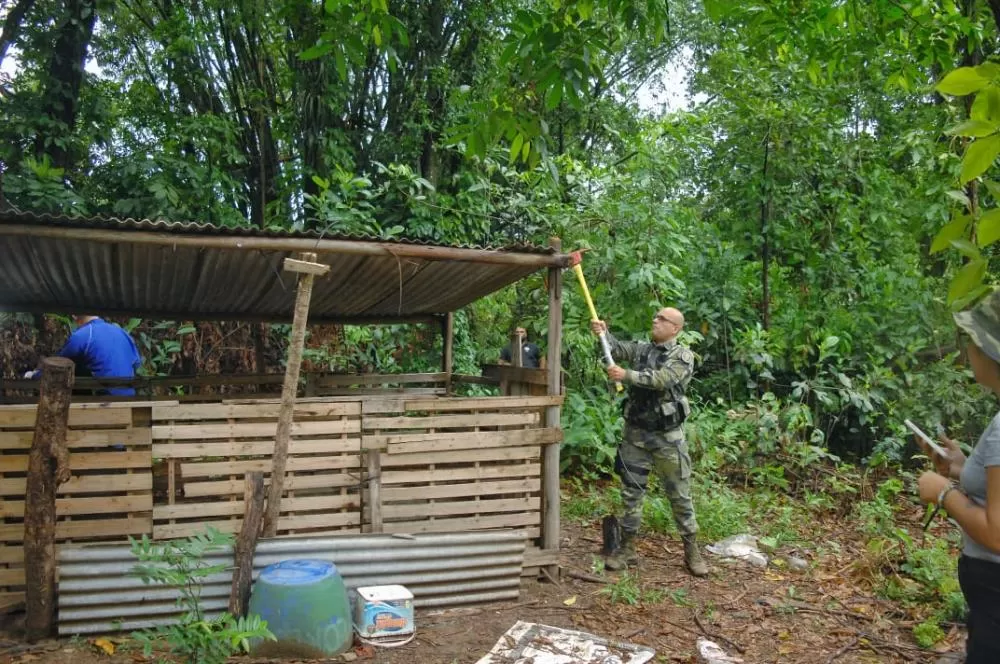 Chiqueiro irregular foi demolido após constatação de crime ambiental e supressão de vegetação em área de preservação