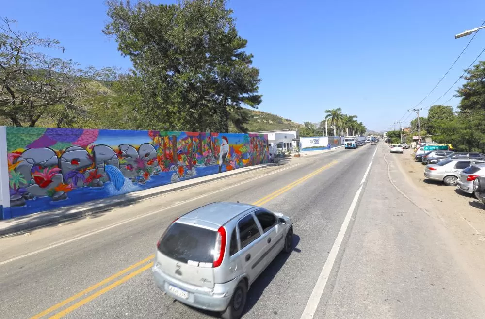 A rodovia Rio–São Paulo, na altura do km 19, acaba de ganhar um painel colorido de 52 metros de comprimento, com ilustrações inspiradas na Mata Atlântica. A obra foi realizada no muro ao redor do portão de acesso à Estação de Tratamento de Água do Guandu (ETA Guandu), com 26 metros de pintura em cada lado.